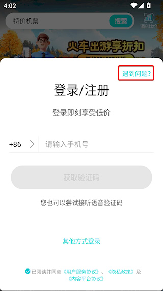 1、在登录界面点击遇到问题