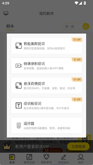 2、创建好台词后,点击开始提词,选择模式进行提词