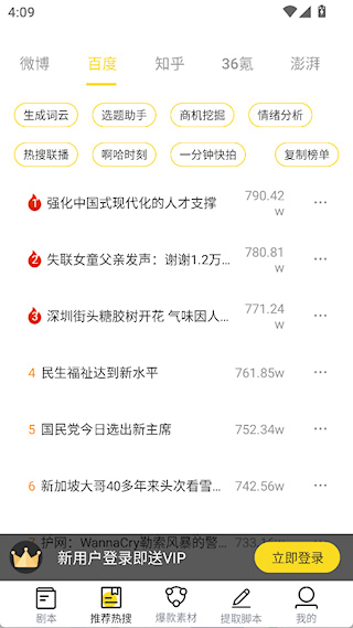 3、推荐热搜界面汇聚了大量热门话题,有助于台词创作更贴合当下主流趋势