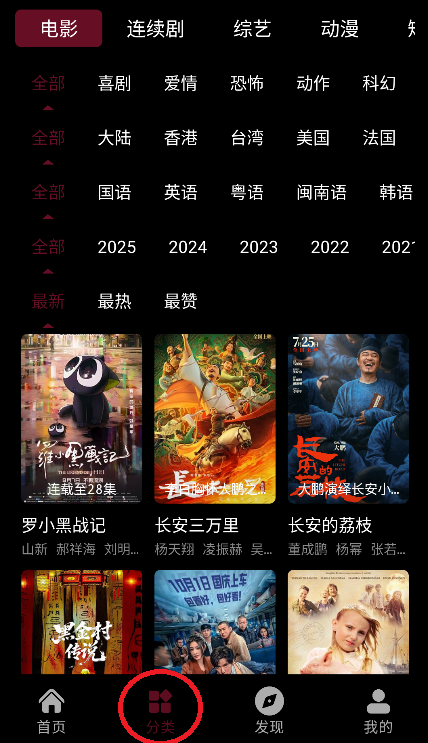 按类型:喜剧、爱情、恐怖、动作、科幻等