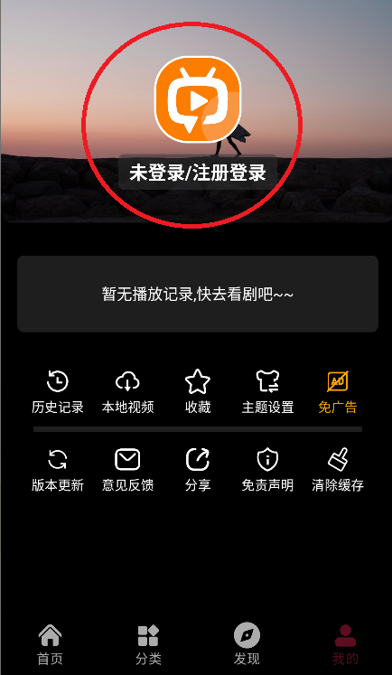点击个人中心顶部的“未登录/注册登录”区域