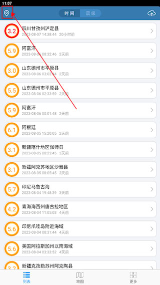2、当您点击定位图标后,系统会自动对您当前所处的位置进行识别,并展示出您周边区域的地震相关信息。