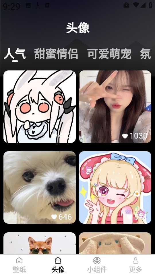 2、在头像资源页面中,任意选择一款心仪的头像,直接点击头像下方的 “头像” 按钮。