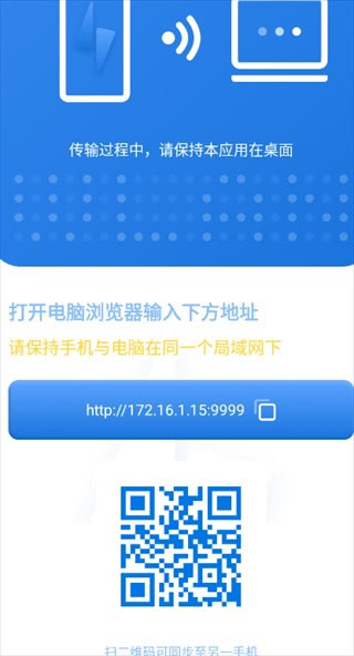 4、若要在移动电话之间传递资料,可让接收方设备扫描屏幕生成的特定图形码;若需与计算机进行交互,只需在电脑浏览器中输入显示的网络地址,连接成功后就能开展传输操作。