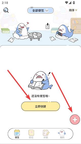 1、完成安装后进入便签日记应用,首页支持自由创建便签,您可以通过点击【立即创建】按钮来创建,也可以点击界面上的【+】按钮进行创建操作。