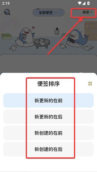 3、点击右上角的【排序】按钮,就能按照自己的使用习惯调整便签的排列顺序。