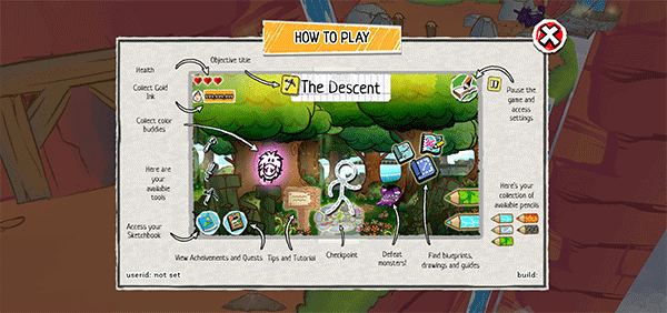 5、进入游戏后,你会看到一个页面,并获得相关绘画工具。借助这些,你能够创作出独属于自己的作品。首先跟随新手教程,开启冒险闯关之旅。