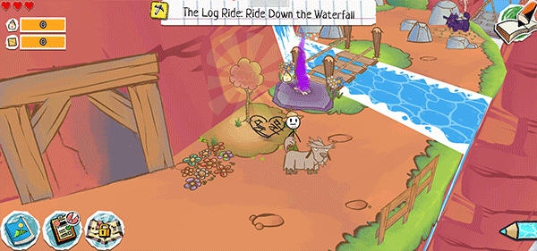 从两条路中间穿行,炸开岩石,在闪烁光芒的草丛里,颜色好朋友正待着。沿着路径直向前走,用炸药开辟道路,千万不要站在树的旁边,不然很容易被烧死。走过一座桥后,朝着左上角方向行进,就能发现你的朋友。就在这时,泽普从阴影中现身,画出一只犰狳怪,还抓走了你的朋友,你只好留下来与这头野兽战斗。直接用火去烧它没有效果,你得先靠近它,诱使它起身喷火,接着再放火烧它的肚子,怪兽很快就会倒下,打死它之后进入山洞就可过关。