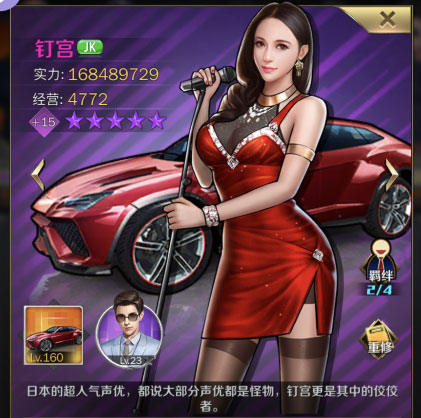 钉宫有着不错的羁绊组合,很容易凑出钉宫+Gakki,钉宫+周+强森+姜暮烟+韦恩超强羁绊组合,钉宫能够位列第一不仅如此,更重要的是她具有比其他紫更容易升星的点,出去环球英才稳定获取碎片之外,还可以通过美女人才礼包2开出钉宫碎片,也是因为这一点力压韦恩摘得TOP1,比较星高才是爸爸。