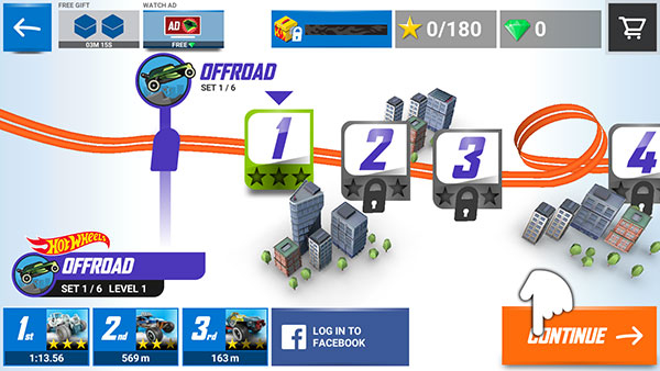 2、接下来能看到,该模式属于闯关类型。我们先开启第一关的挑战,点击右下角的【CONTINUE】按钮。