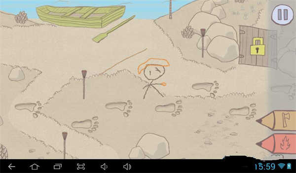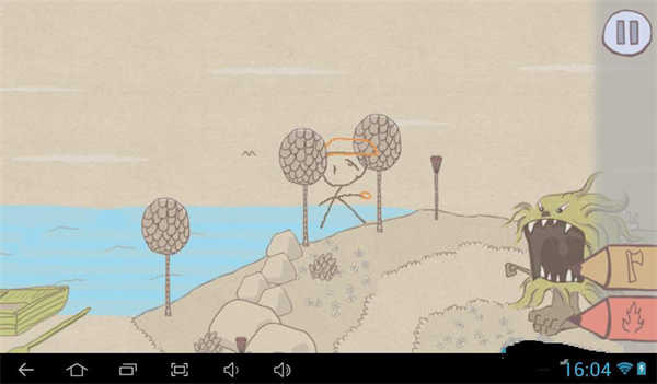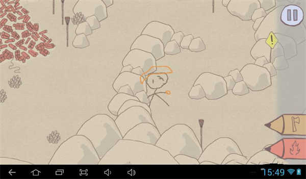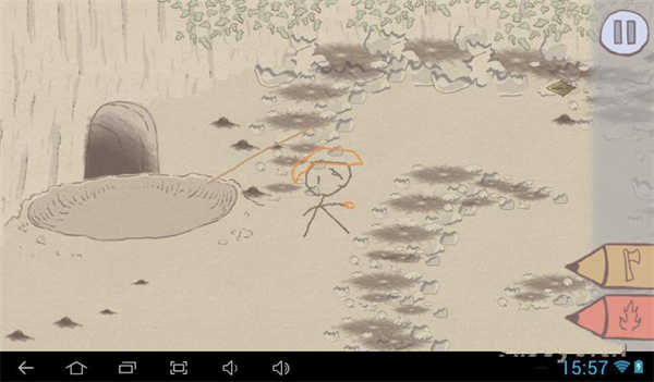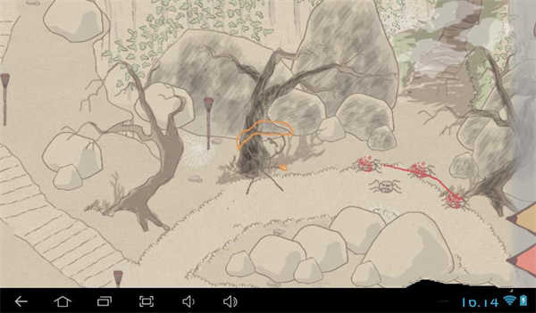 4、画一把斧头来打击怪物。在寻找它的路上,我们需要用火来消除障碍,或者通过解谜来前进。
