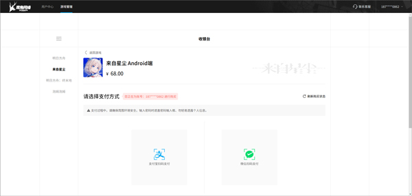 4、游戏价格为68元,选择支付方式,可使用支付宝和微信扫码支付,支持成功后即可完成预购。