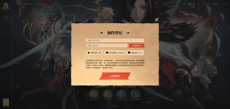 2、输入手机号获取验证码,然后选择测试设备完成预约登记;