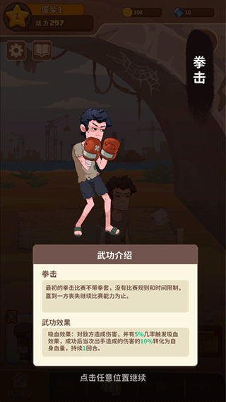 1、第一步,打开《我不是废柴》最新版本的游戏。进入游戏后,你将以一个废柴的身份开启旅程,此时可以选择学习一门功夫,比如拳击。