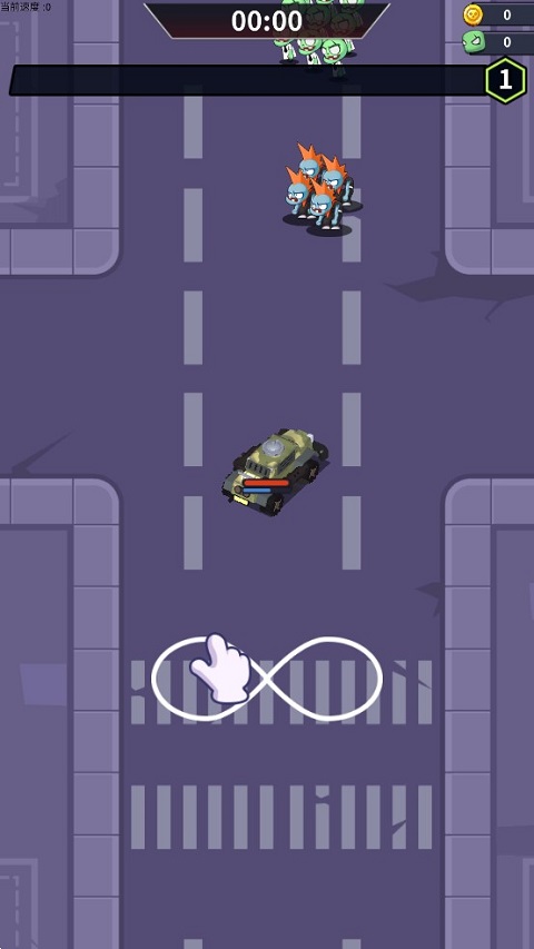 1、如图所示,在竖屏界面的操作模式下,玩家可通过在屏幕上滑动来控制战车移动。