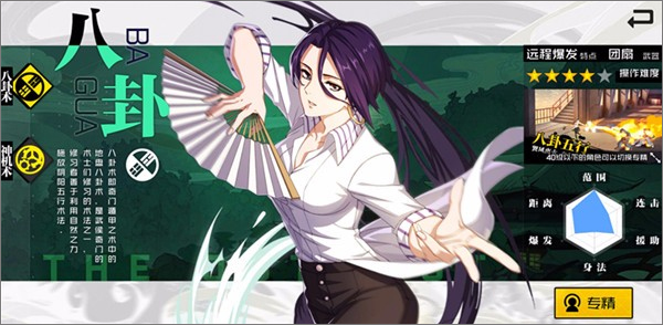 八卦术专精中比较有特点的一个技能就是绝技“五行通天阵”了,本技能覆盖面较大,即使与敌人与我们之间稍微有一些距离,也会被本技能的攻击范围波及到。本绝技的伤害数值很可观,一段时间内可对对人造成大量的伤害。