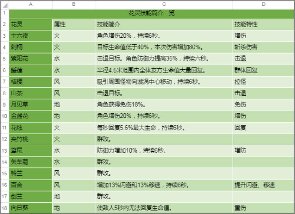 各位可根据副本需求,挑选技能适配的花灵,如此就能达到事半功倍的效果。例如在火系花灵中,当面对血量较低的群怪时,可以选用刺桐与夹竹桃,从而打出群体输出;要是对付单体血量厚实的boss,不妨选择十六夜与花烛,这样在保证输出的同时,还能保障自身续航。