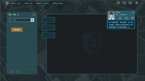 游戏系统内的案件,皆取材自炽城实际发生过的事件,并以关键线索的形式予以存储。每条线索都涵盖自身相关信息,你需要通过查看这些信息,持续挖掘新线索,把碎片化的线索内容在脑海中拼凑成完整的案件,进而推理出案件发生的全过程。在游戏里,玩家只要答对系统中关于案件的问题,就视作破解一个案件。并且在成功破解案件之后,还能够查看罪犯的“犯罪陈述”。