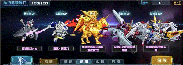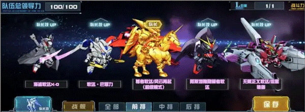 在以尊者敢达/风云再起(超级模式)为队长技的单典藏队伍里,其余机体皆是格斗系列队伍中的“老将”。尊者敢达/风云再起(超级模式)持有“无畏先锋”Buff ,还能够和敢达·巴耶力实现技能联动,其实力相当强劲。