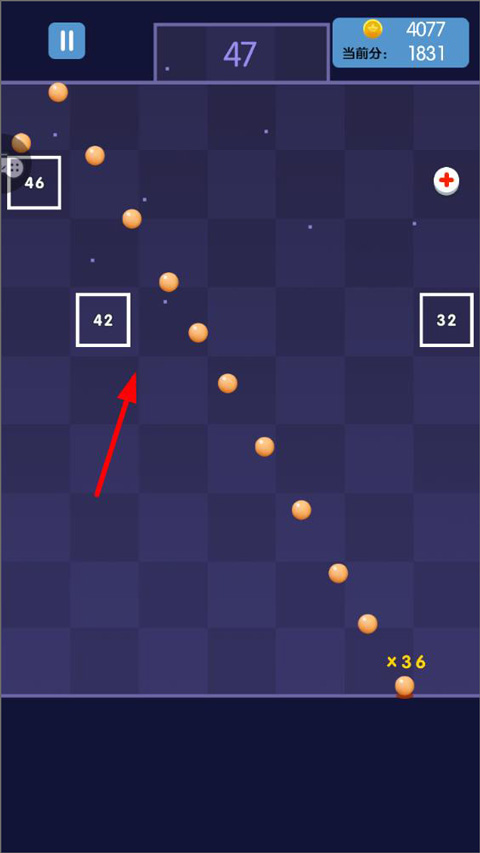 6、点击进入BB弹玩法,在该玩法中,玩家要操控位于地面的小球,使其弹起并击中上方的图形,每当成功击落一个图形,就能获取奖励与积分。