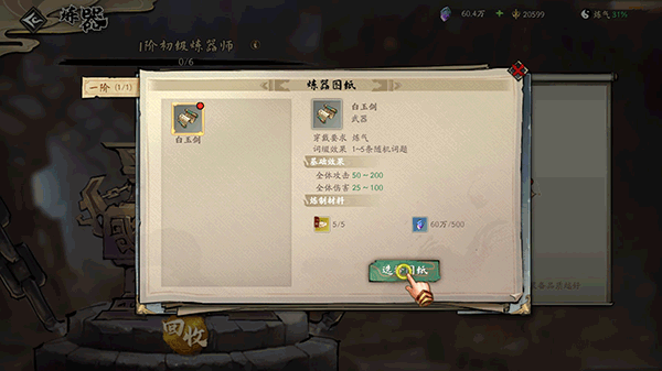 5、若制作成功,将依据所制作武器的品阶,增加相应的心得。