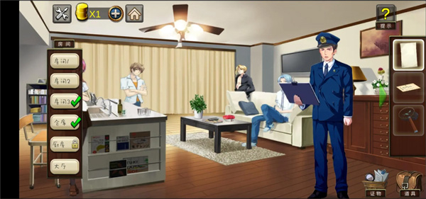 点提示会告诉你先完成前面4个房间证物的收集,但是房间最后收集到的还是放在道具栏,而不是证物栏里。