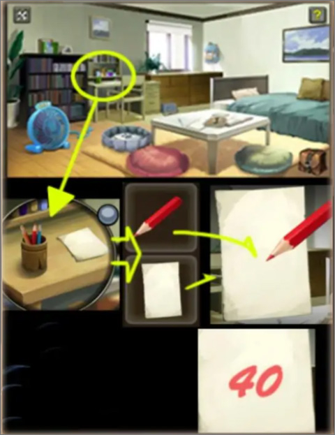 6、点击书桌右则的桌子,获得笔和纸,用笔点击纸,写下鞋码40(41是错误的)。