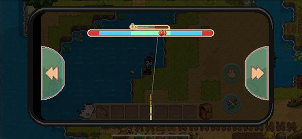 3、切换至钓竿状态后,前往你想钓的鱼所处的水域,接着点击河面就能把钓竿甩出去。稍作等待,会出现一个感叹号,这时先别急着提竿,通常第二次出现感叹号时鱼上钩的几率会更高些。要是鱼没上钩,也别着急,这存在一定概率,着急也无济于事。