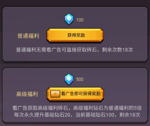 就是看广告,可以增加普通福利获取的数量,所以,先点完高级福利,再点普通福利。