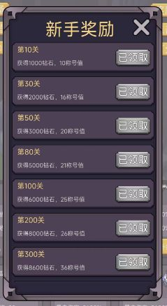 主要指完成推图后获得的奖励,该奖励主要涵盖钻石与称号值,仅可领取一次。重生后,关卡会重置为0,同时新手奖励不能再次领取。