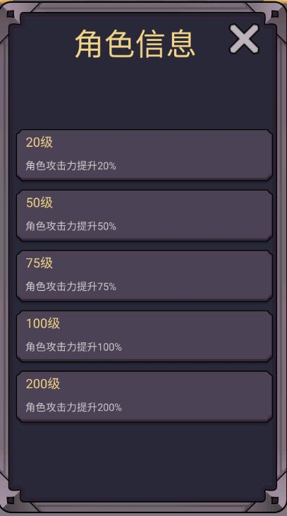 每个伙伴20级、50级、75级、100级、200级分别面临角色的能力提升。如下图所示。