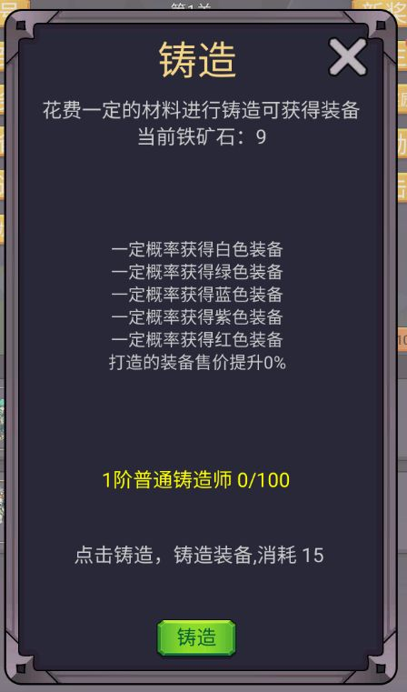 铸造为装备的主要获取途径,需要材料铁矿石,铁矿石主要获取途径为推图和铁矿奖励。