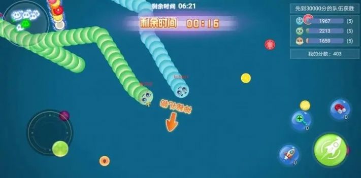 3、尽可能多地吃到食物,撞到其他玩家的蛇身,让自己生存时间尽可能长。