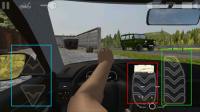 7、启动车辆请点击左上角的钥匙图标。蓝色按钮用来换挡,红色按钮用于刹车,绿色按钮是油门。通过倾斜手机能够调整车辆方向。默认视角为第一人称,若想切换至第三人称视角,点击右上角即可。