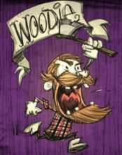 伍迪是17版中登场的角色,作为最后一个通过经验解锁的人物。根据他的描述和名称,他是一名伐木工人。游戏开始时,他自带一把无耐久的红色斧头(Lucy),砍树速度极快。当砍伐一定数量的树木或在月圆之夜时,伍迪会变身为海狸。在这种状态下,他没有物品栏,但会出现一个木头值。砍倒树木或挖掘草、浆果丛、小枝条时,木头值会增加;如果受到攻击或食用木头、草、小枝条,木头值则会减少。当木头值降为零时,伍迪会变回原形,同时扣除精神值(饥饿值会匀速下降)。变身为海狸的伍迪可以使用除除草叉以外的所有工具,并且处于无敌状态。