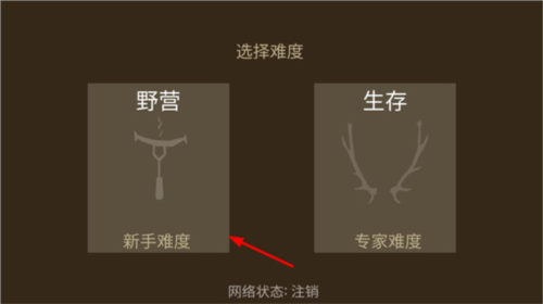 3、玩家进入游戏时,需挑选野外求生场景(独木河、山脉),同时选择求生难度(新手难度 - 野营、专家难度 - 生存)。