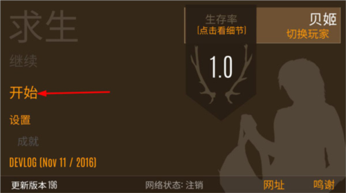 2、游戏菜单页面,玩家可以设置游戏音乐、开关、模糊效果等,查看生存率,点击开始;