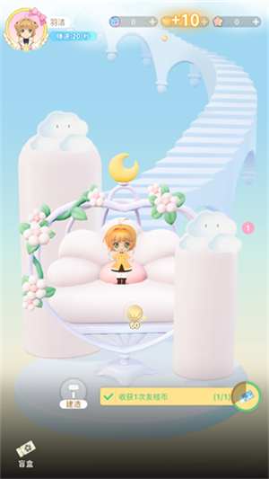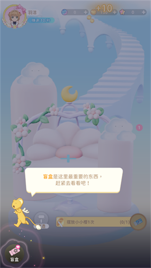 5、抽取盲盒后,将小小樱摆放到回忆舞台,还可以产出友枝币~