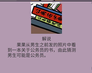 3、仔细研读每一段剧情,依据文中给出的提示找出对应的答案就行。
