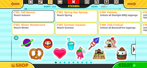 9、收集贴纸-在玩游戏时完成各种任务和成就,为您的收藏赚取彩色贴纸。每位顾客都有一套三张最喜欢的贴纸:赢得全部三张,您将获得一套全新的服装来送给该顾客!还有更多;