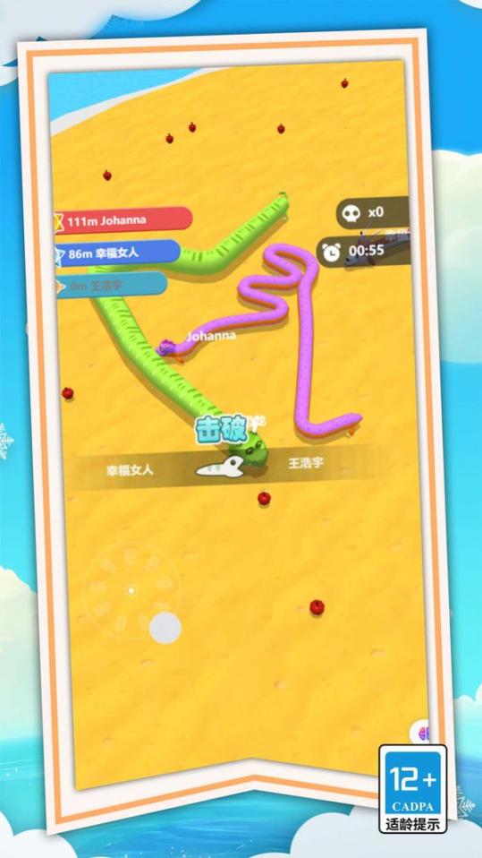 《狂暴贪吃蛇蛇大作战》官方版是一款以卡通风格为主的贪吃蛇闯关游戏。玩家将化身为一条狂暴的贪吃蛇,在多样化的场景中不断挑战自我,提升实力。游戏拥有独特的贪吃蛇形象设计,并融入了丰富的地图场景。玩家需完成各种任务挑战,收集道具和技能以升级蛇类能力。游戏操作简单易上手,画面可爱生动,音效悦耳动听,为玩家带来丰富多样的游戏体验。