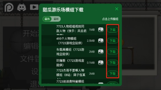 1、进入游戏点击打开7723模组,选择一个模组然后点击下载