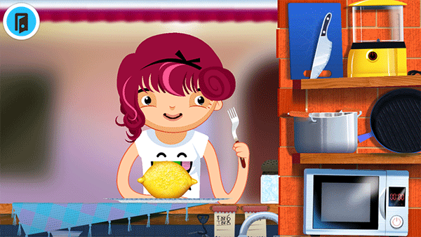 4、在此,我为小美榨了一杯柠檬汁。另外,你能够点击桌面上的调味料,为食物增添佐料。