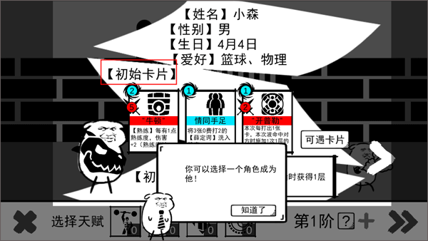 2、跟随校长的指引,了解游戏相关的内容和提示,游戏的最开始是根据自己的喜好来选择不同属性的卡片。