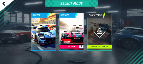 2、选择好车辆之后,点击race进入到游戏关卡,首先选择第一个游戏模式;