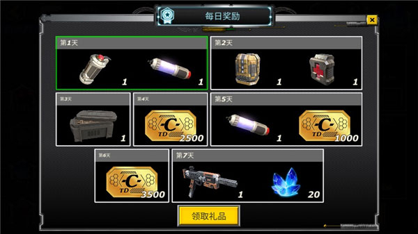 2、玩家登录游戏后,即可领取每日奖励。这些奖励既能用于升级武器装备,也能用来购买它们,部分奖励更是直接赠送各类武器装备,帮助玩家在游戏里轻松取胜。