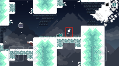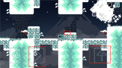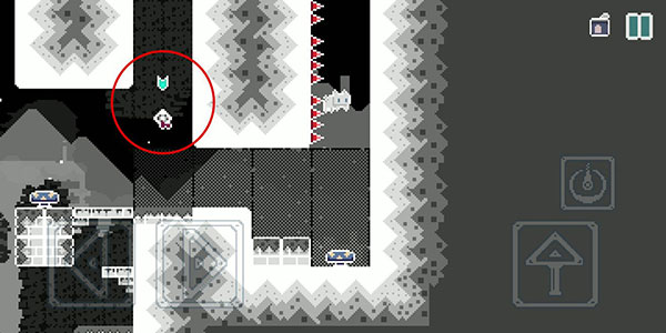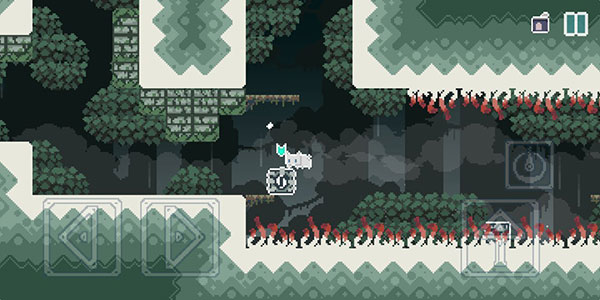 让猫咪站在下方平台的右侧,紧紧挨着边缘,然后和方块交换位置(这样方块就会处于图示的位置),之后从上方平台下来,落在方块上。用这种办法,就可以把方块移到左边当作垫脚石,从而拿到罐头。