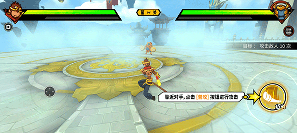 2、靠近对手,点击普攻按钮进行攻击;