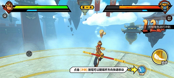 3、点击冲刺按钮可以可以朝摇杆方向快速移动;