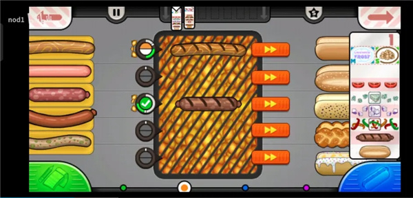 热狗店里总共有5种标准香肠,每一种都有不同时长的烤制时间,玩家可以在升级商店里购买警报器与加速器来提高烤制的效率。